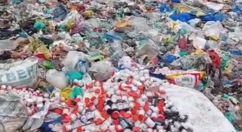 Ayush medicine worth lakhs has been dumped at a treatment plant in the Malshahi Bagh area of Central Kashmir’s Ganderbal district.