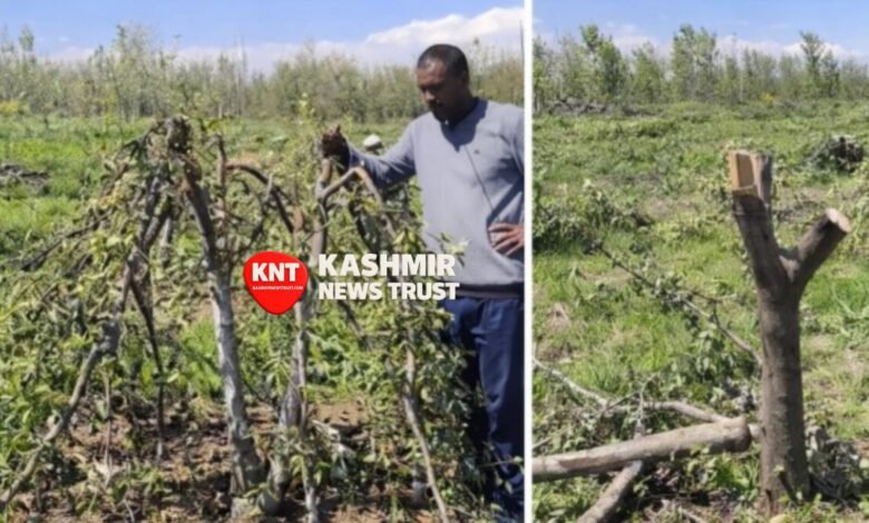 Kulgam, April 12, KNT: Hundreds of apple trees were allegedly cut down overnight in Kaharwat village of south Kashmir’s Kulgam district, leaving local growers devastated and facing significant economic losses.