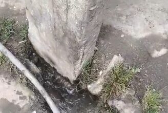 Srinagar, Jan 4, KNT: A damaged water pipeline beneath an electric pole at Kalashpora, opposite Nun Gania Masjid in the Bohri…
